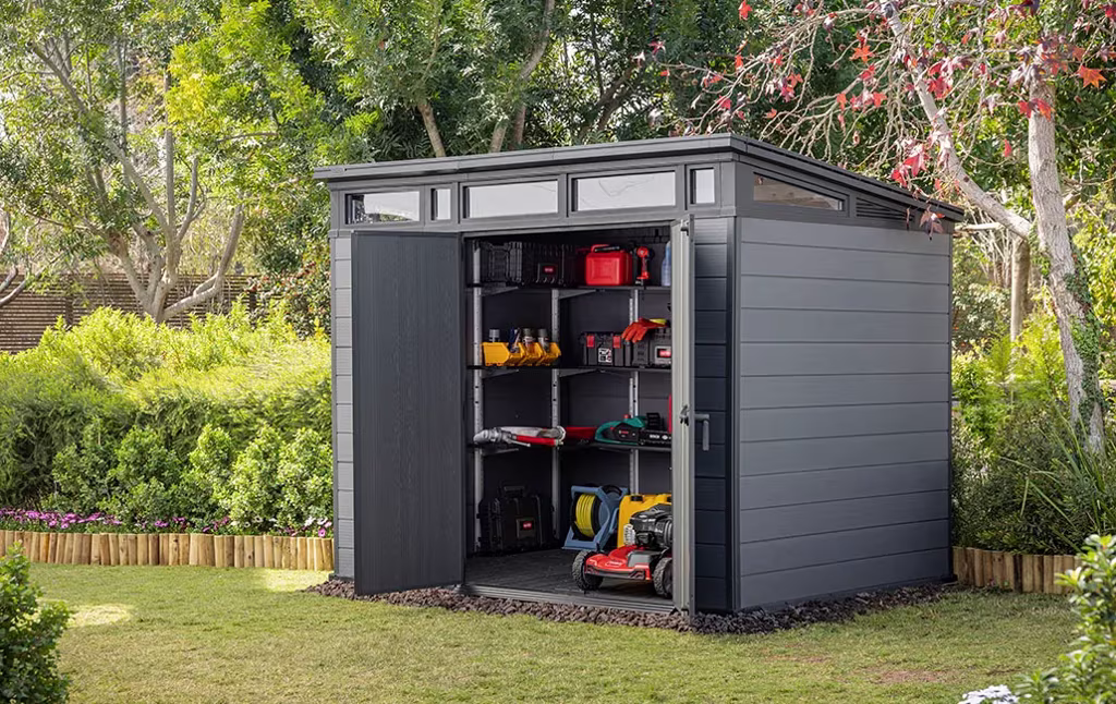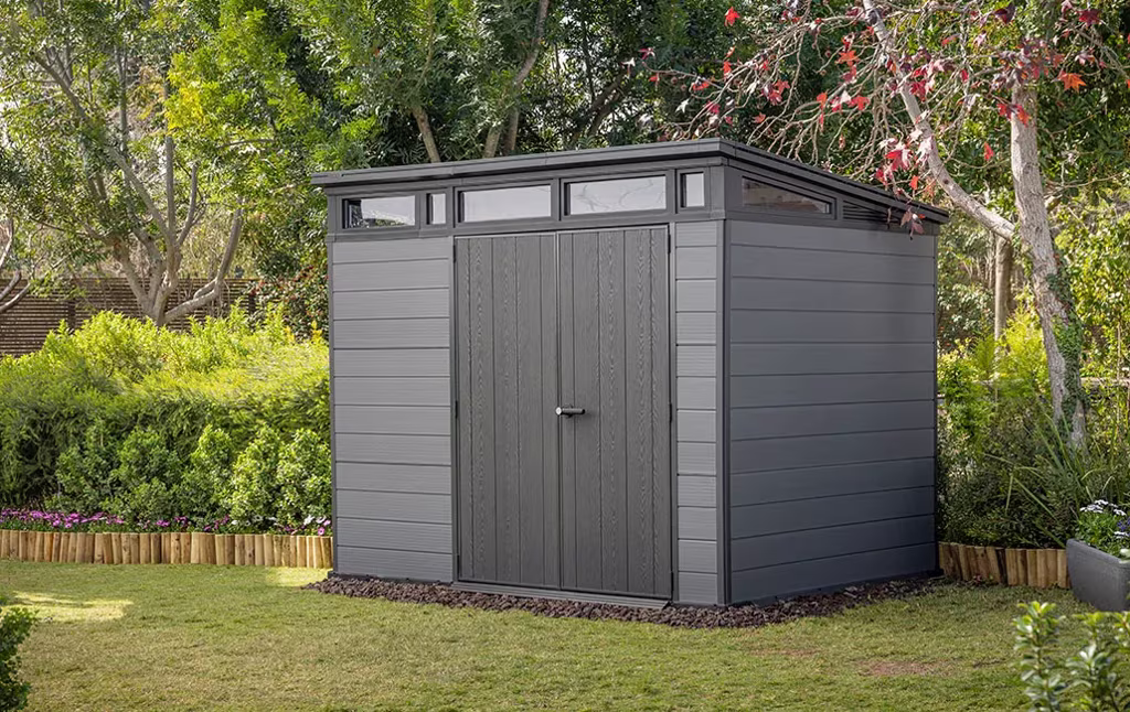 Garage feeling a little cramped? Perhaps you need a place to stow your kids’ outdoor toys? Sounds like you need a shed. If you’re in the market for a durable shed kit that only requires easy assembly, the Cortina 9x7 shed is the perfect size shed for you. It is spacious enough to deliver the storage benefits of a large shed, yet perfectly sized for spaces where a true medium shed is the best fit. This sleek backyard shed is weather-resistant, features thick double-walls, has steel-reinforced walls and roof and can handle snow loads of up to 30 PSF. It can withstand winds up to 90 mph. So, it will stand up to whatever Mother Nature throws at it. With ample double doors, a place for a lock and built-in ventilation, your items will be stored safely in this contemporary outdoor storage away from damage. The Cortina outdoor storage shed also comes with a heavy-duty floor to ensure a sturdy foundation for all of your items and a pent roof for better water drainage. Don’t miss out on this amazing contemporary garden shed.